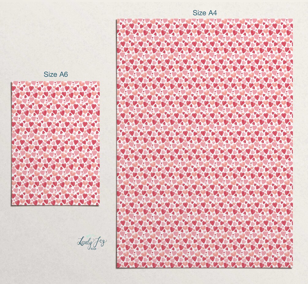 Red and Pink Watercolor Small Hearts Design Digital Clay Transfer Sheet in US and Metric Sizes