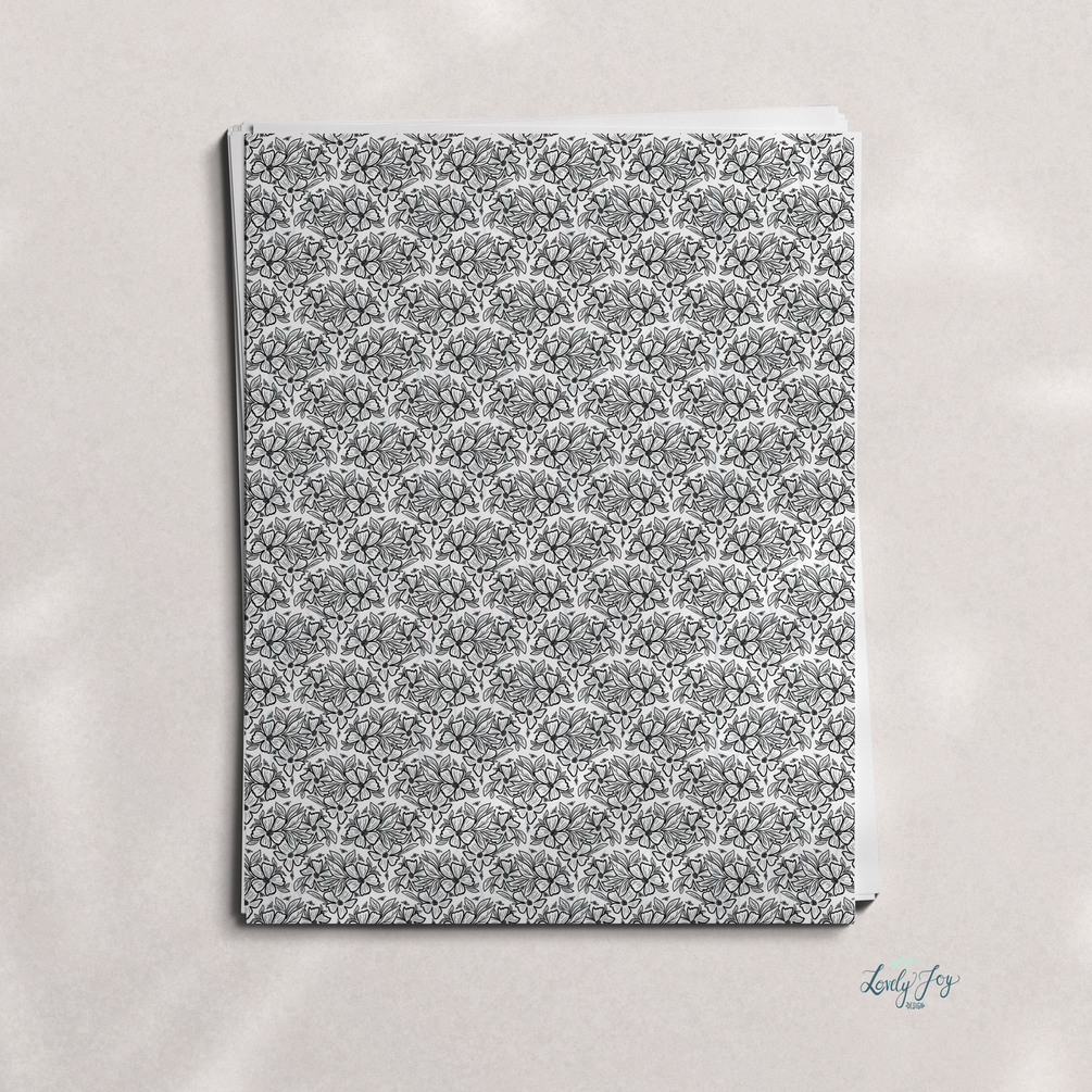 Easily create a polymer clay transfer sheet with this digital paper featuring a hand drawn black floral shell design!